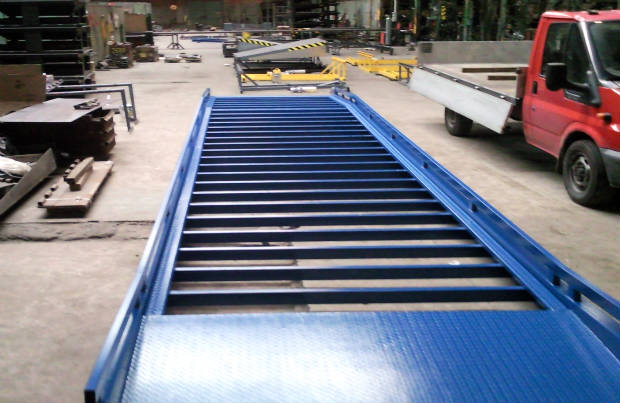 Velká rampa - nájezd, který se nachází v galerii byl konstruován na šířku 2.2m a délka je 12m. Jedná se o kovovou konstrukci s nátěrem RAL opatřenou protiskluzovými rošty a hydraulikou.